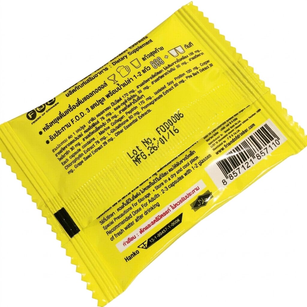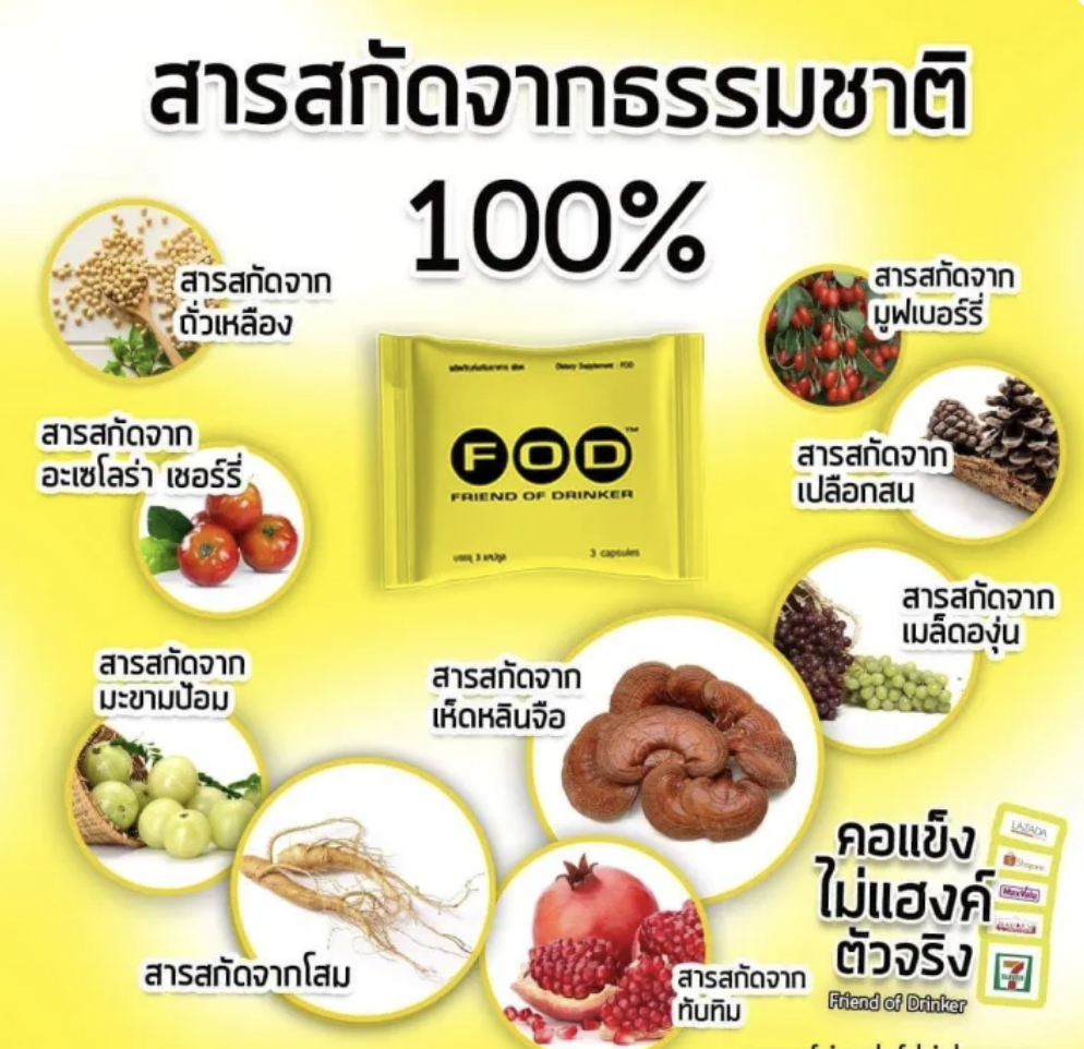 FOD Friend of Drinker — это грамотно сбалансированная пищевая добавка из Таиланда, созданная специально для поддержки организма в периоды повышенных нагрузок, связанных с употреблением алкоголя. Средство не просто маскирует неприятные симптомы, а направлено на поддержание естественных функций и внутреннего баланса, чтобы утро после праздника было бодрым и продуктивным.