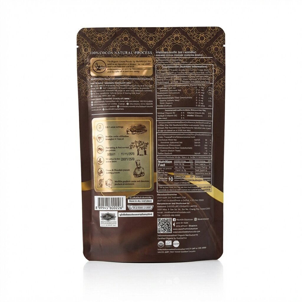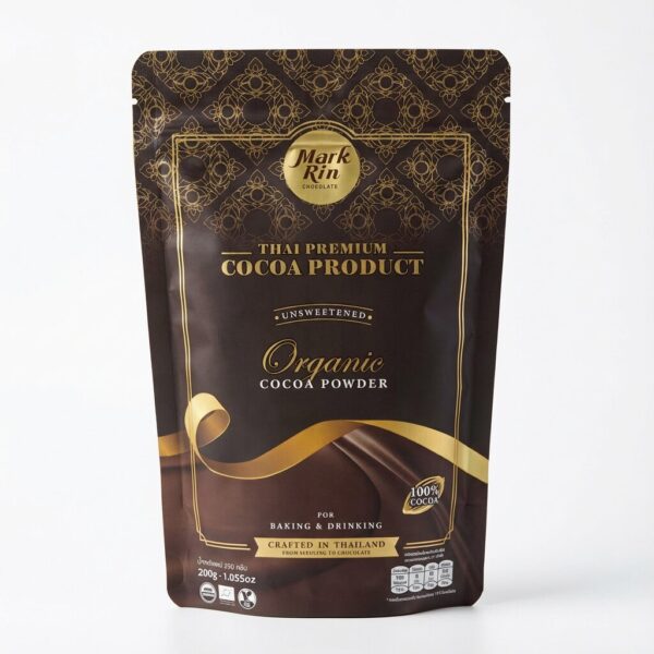 Mark Rin Thai Premium Organic Unsweetened Cocoa Powder — это премиальный продукт из северного Таиланда, созданный из отборных бобов сорта I.M.1 для придания глубокого вкуса и аромата десертам без использования сахара и химической обработки.