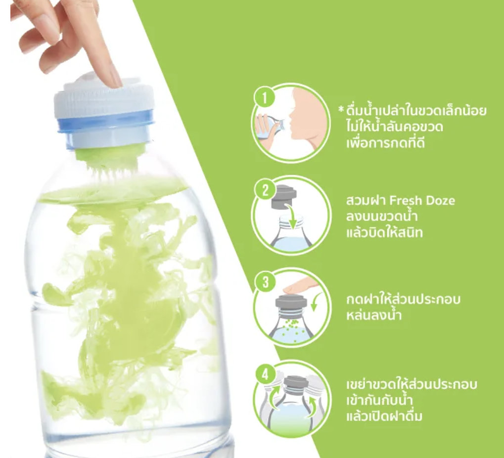 - Снимите оригинальную крышку с бутылки и плотно накрутите крышку Fresh Doze Caps.