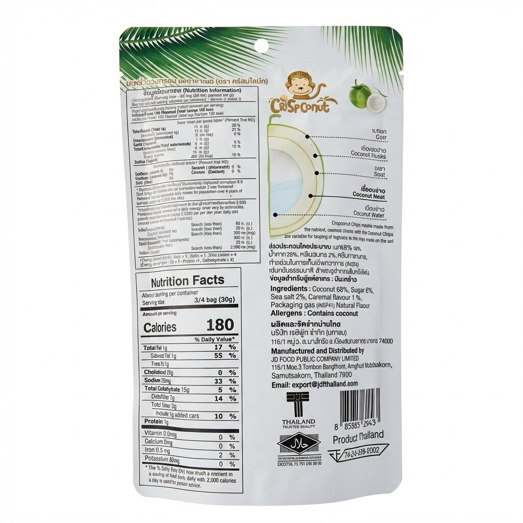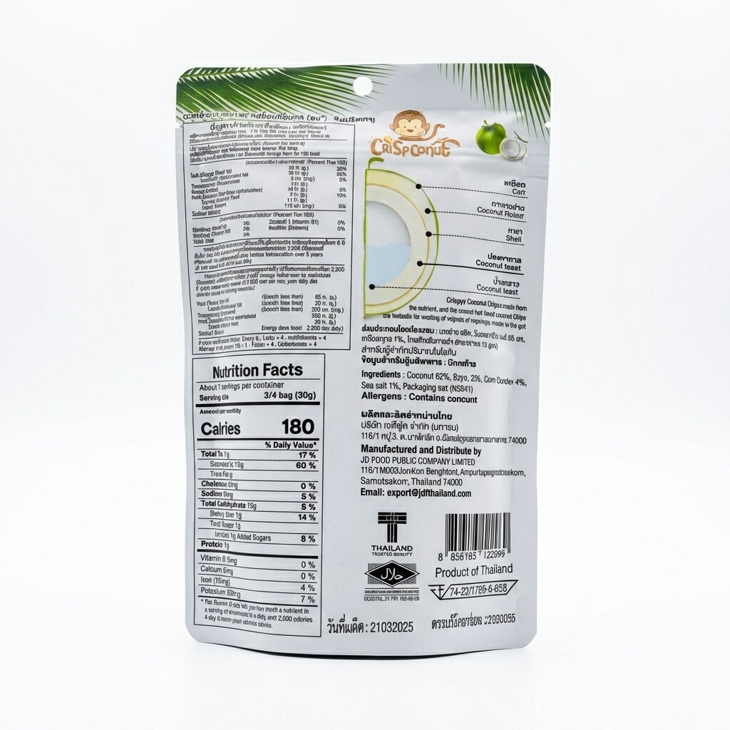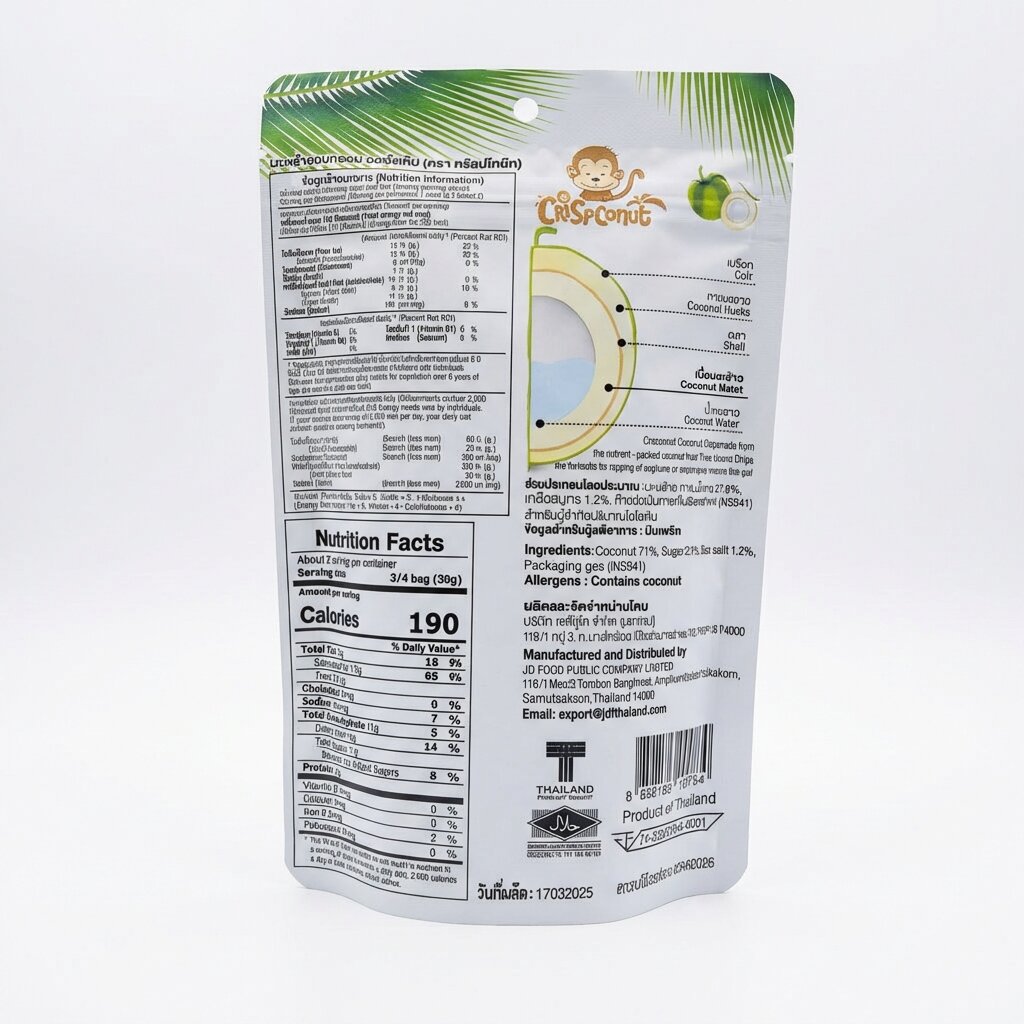 Происхождение: Слайсы производятся из отборных кокосов, выращенных в Таиланде.