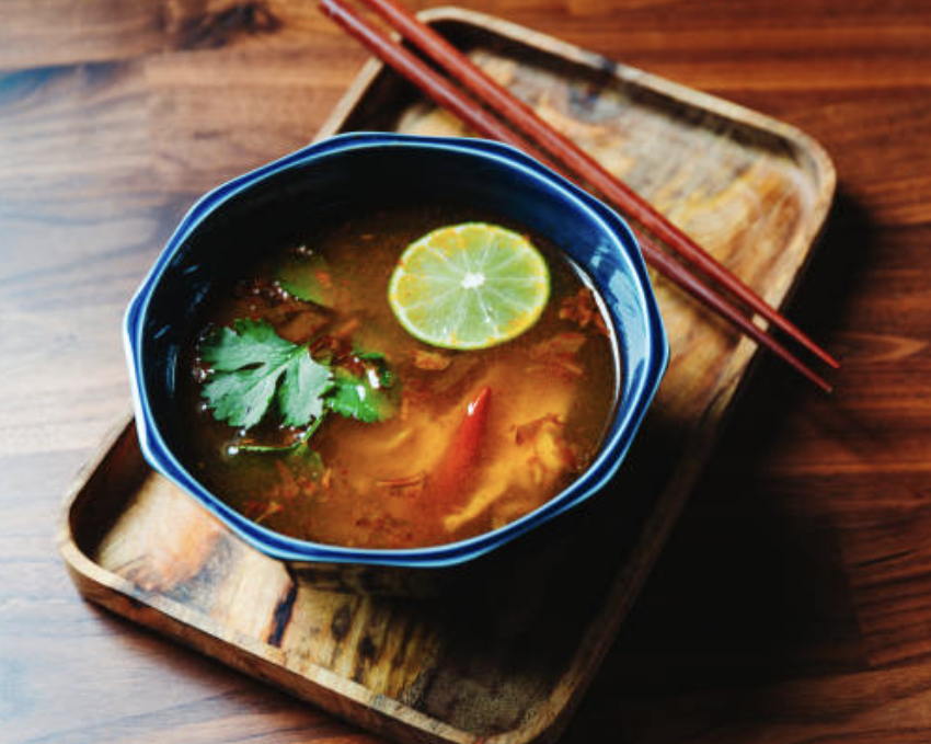 - В самом конце приготовления отрегулируйте вкус, добавив сок свежего лайма или лимона, немного рыбного соуса и, при желании, кокосовый сахар для сбалансирования кислинки и остроты. Для более нежного и сливочного вкуса можно ввести 3–4 столовые ложки кокосового молока, предварительно размешав его с небольшим количеством бульона из супа.