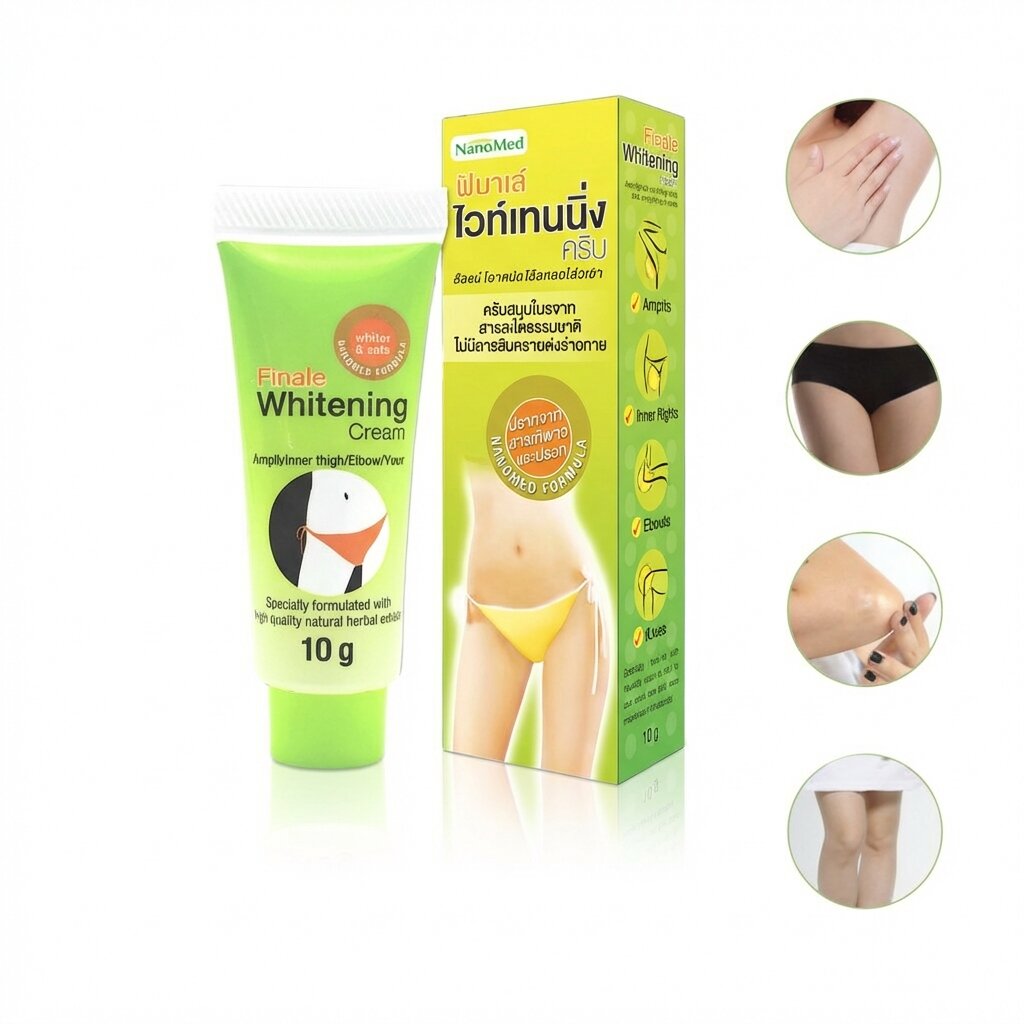 Отбеливающий крем Finale Whitening Cream – это ваш секрет безупречно гладкой, светлой и ухоженной кожи в деликатных зонах. Он специально разработан для борьбы с потемнением, огрубением и «гусиной кожей» на коленях, локтях, шее, в области паха и подмышек, возвращая коже естественную красоту и ровный тон.