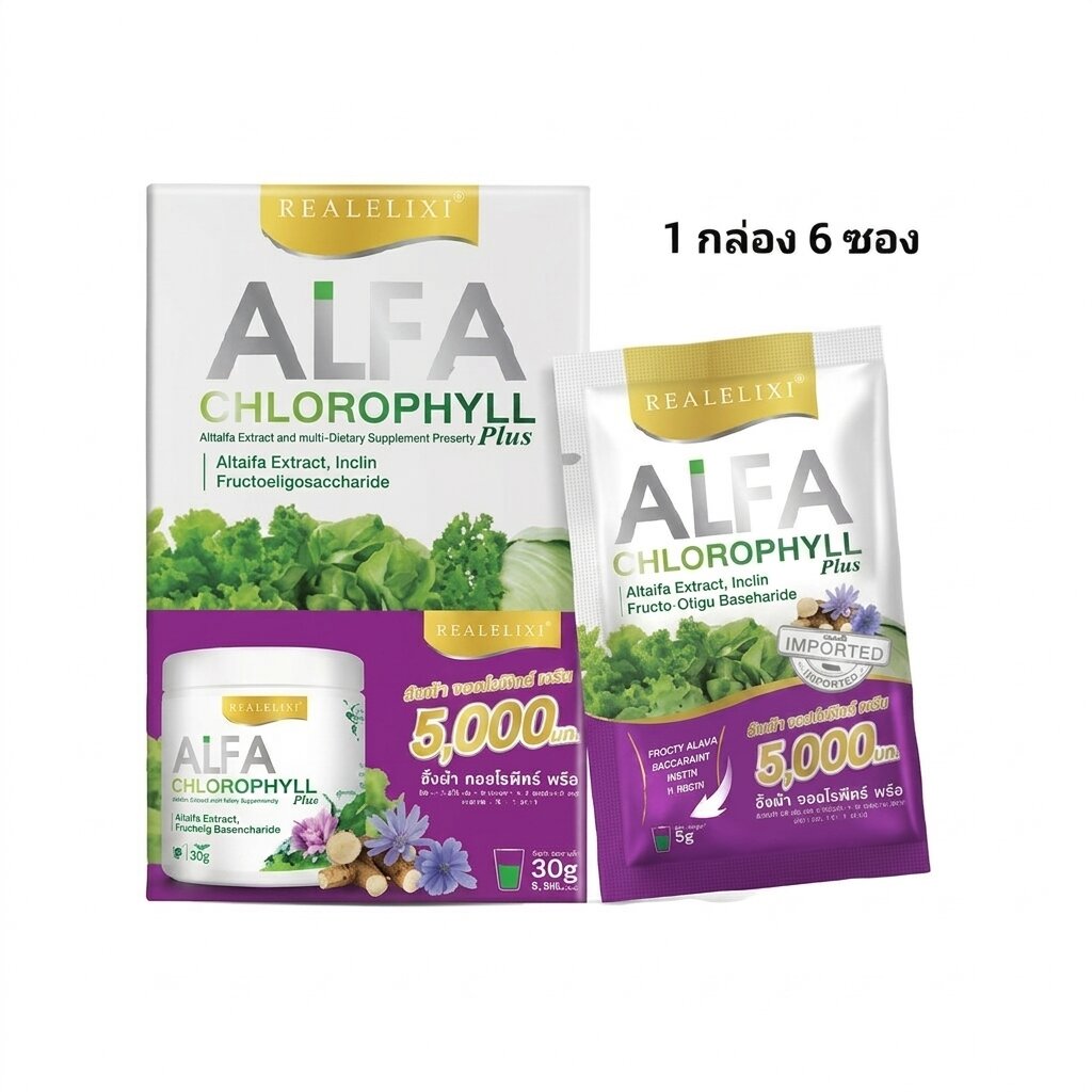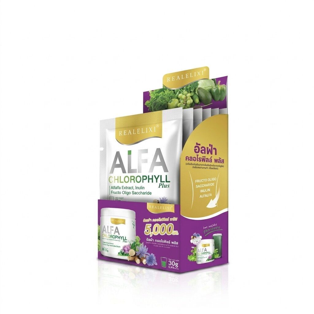 Real Elixir Alfa Chlorophyll Plus — пищевая добавка в форме порошка с экстрактом люцерны и пребиотиками способствует мягкой детоксикации, улучшает работу кишечника и укрепляет естественные защитные силы организма.