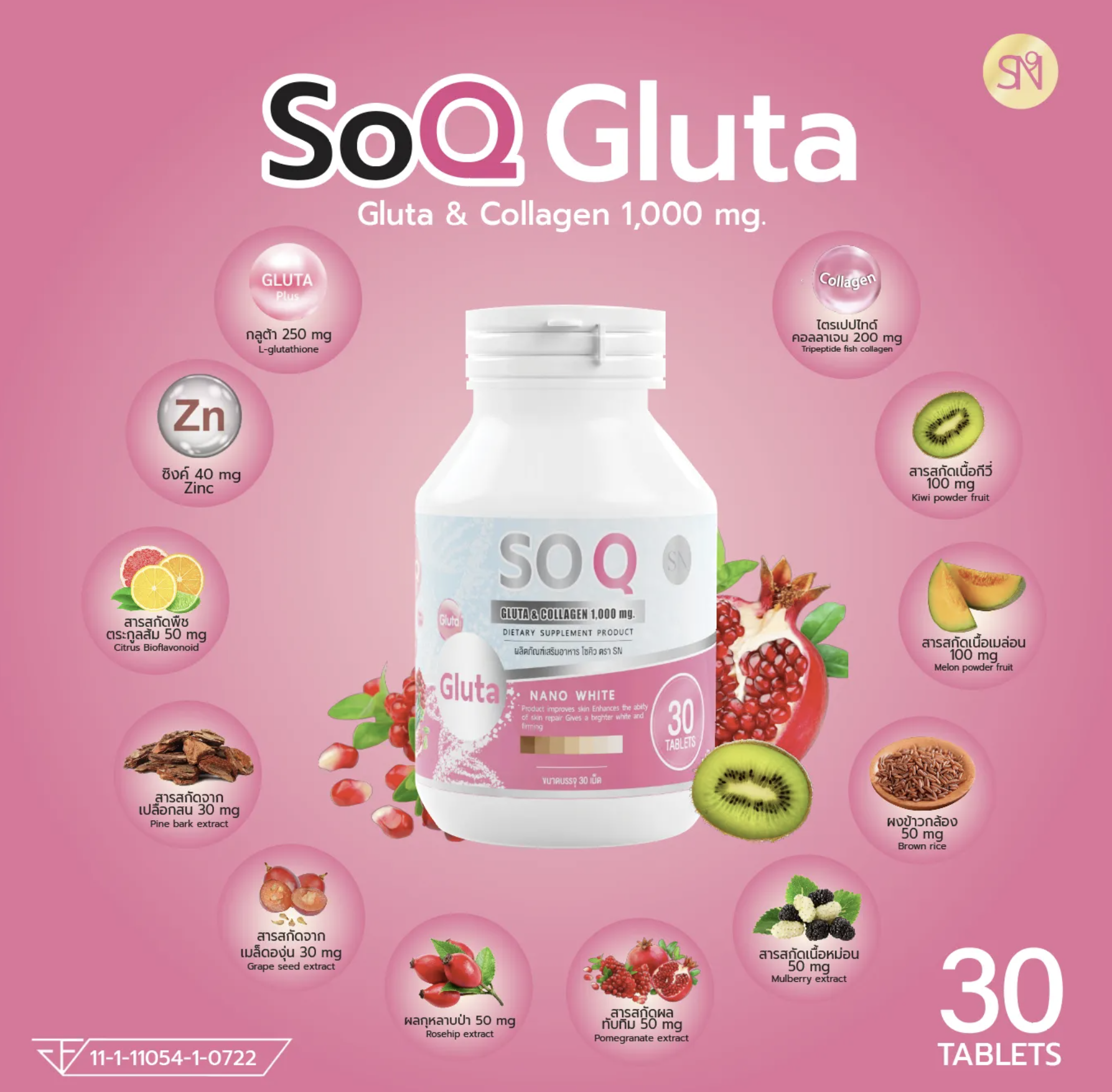Мультивитаминный комплекс SoQ Gluta с концентрацией 1000 мг создан для комплексного преображения внешности: от выравнивания тона лица до укрепления структуры волос и ногтей. Средство эффективно решает проблему тусклости и неравномерной пигментации, работая изнутри над восстановлением естественной красоты и гладкости эпидермиса.
