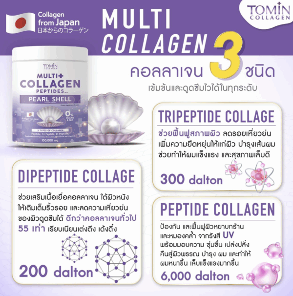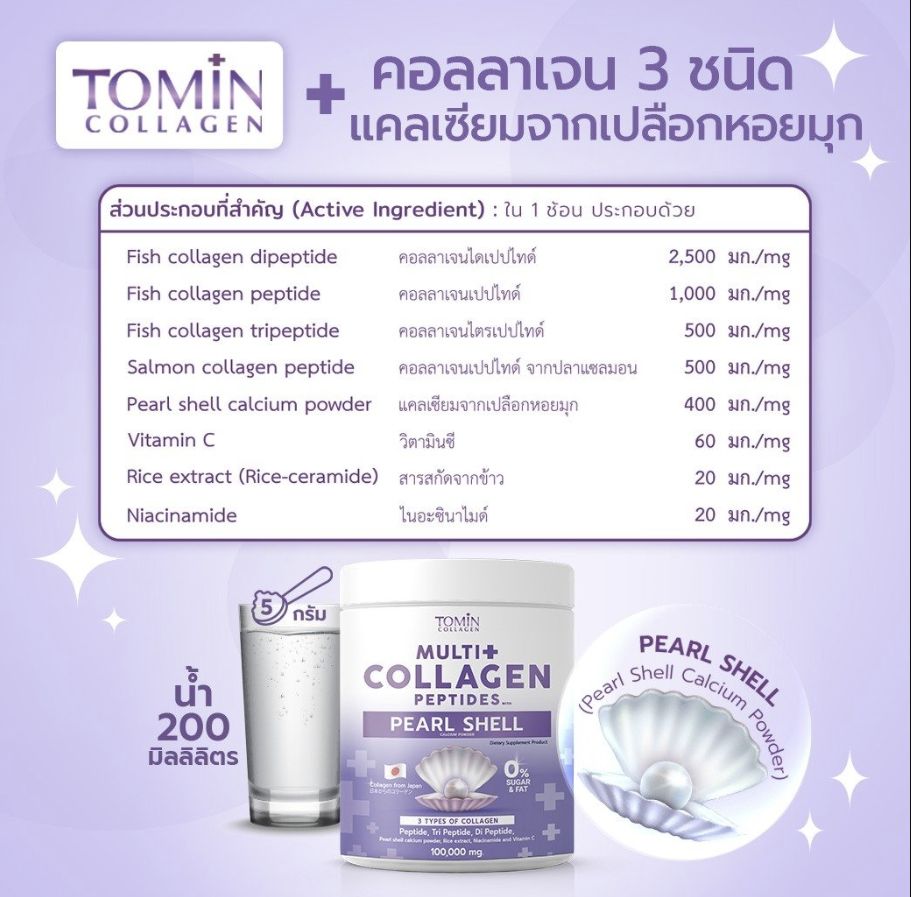 Мультиколлагеновые пептиды (3 вида коллагеновых пептидов) с жемчужным порошком Tomin Multi Collagen Peptides with Peal Shell