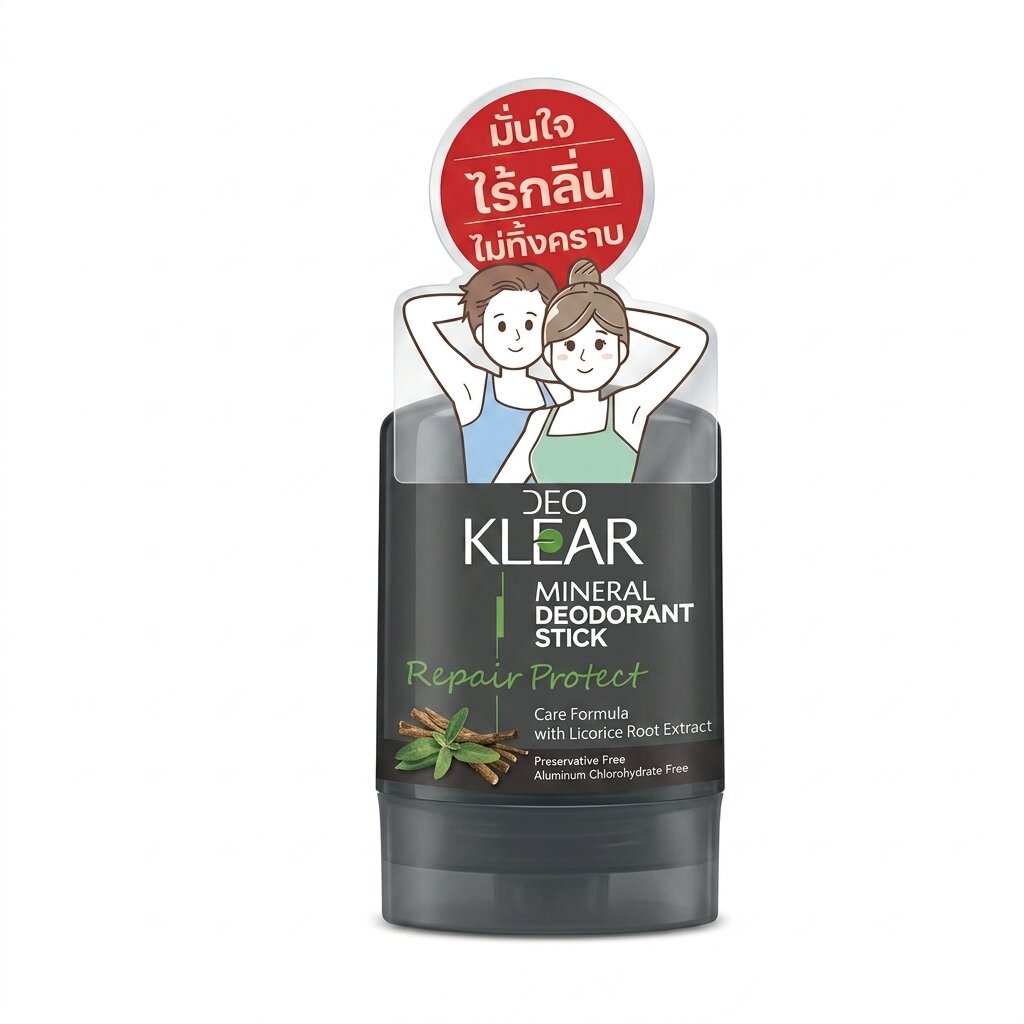 Минеральный дезодорант-стик DEOKLEAR представляет собой кристалл из аммонийных квасцов — природного минерала, эффективно борющегося с бактериями, которые являются причиной появления неприятного запаха. В отличие от традиционных антиперспирантов, кристалл действует снаружи: он оставляет на коже тончайший слой в виде пыльцы, который сорбирует влагу и нейтрализует патогенную микрофлору. При этом сохраняется необходимое увлажнение и ощущение комфорта.