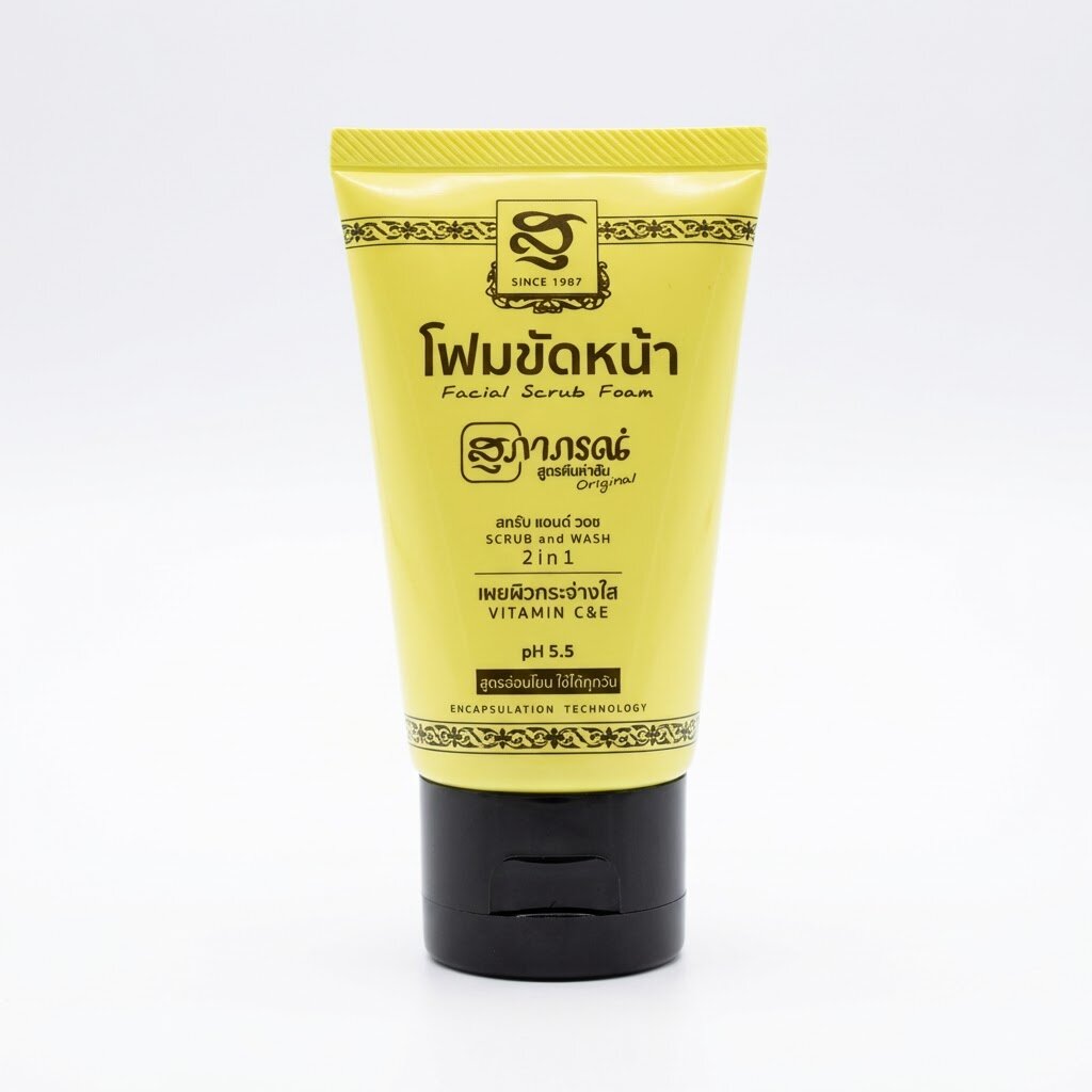 Supaporn Facial Scrub Foam представляет собой инновационное решение для ежедневного очищения, сочетающее традиции тайской травяной косметики и современные технологии. Это готовое к применению средство в удобном тюбике заменяет сразу два этапа ухода: глубокое очищение пор и мягкую эксфолиацию. Концентрированная формула разработана для подготовки дермы к дальнейшему питанию, обеспечивая мгновенную чистоту и гладкость без лишних усилий.
