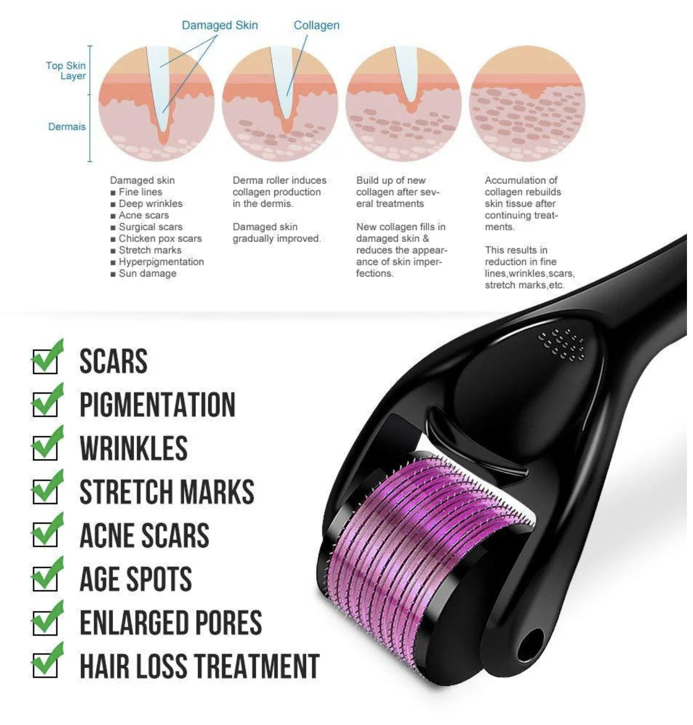 Титановый дермароллер представляет собой эффективное решение для проведения процедур мезотерапии в домашних условиях. Ключевым элементом конструкции является барабан, содержащий 540 ультраострых микроигл. Такая плотность расположения элементов обеспечивает равномерное покрытие обрабатываемой зоны и создает условия для индукции коллагена — процесса, при котором организм начинает активно обновлять ткани в ответ на микроскопические проколы. Кожа становится более плотной, упругой и гладкой.