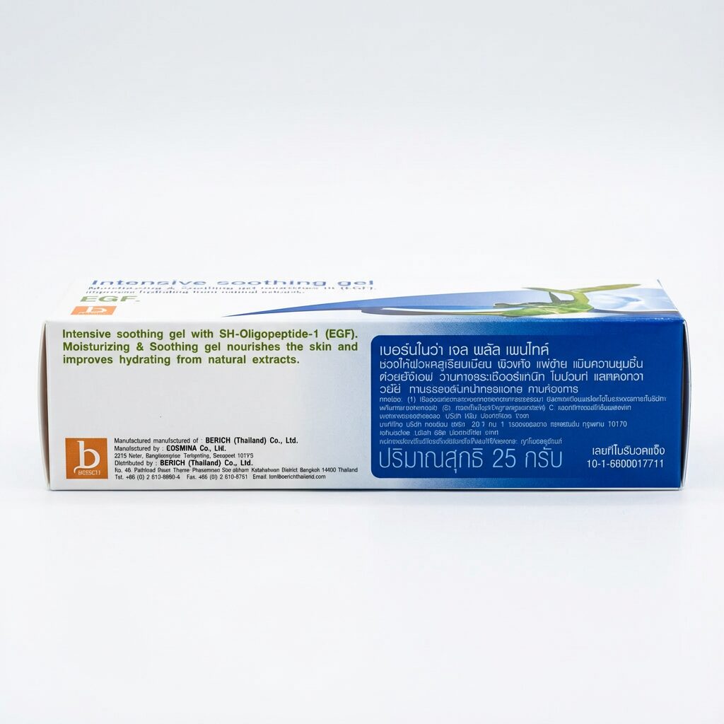 Ключевым компонентом геля является белок EGF (Эпидермальный Фактор Роста, SH-Олигопептид-1). Этот пептид действует на клеточном уровне, стимулируя естественные процессы обновления клеток тканей, ускоряя заживление повреждений и способствуя синтезу собственного коллагена. Благодаря EGF, гель эффективно помогает разгладить неглубокие шрамы, в том числе от угревой сыпи, омолаживает кожу и улучшает ее общее состояние. Он также способствует восстановлению кожи после косметологических процедур, например, лазерной обработки, уменьшая покраснения и ускоряя регенерацию, уменьшая дискомфорт и воспаления.