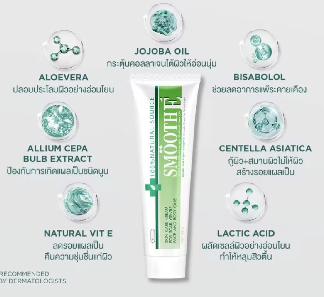 В основе эффективности лежит синергия натуральных компонентов и передовых технологий. Центелла азиатская и алоэ вера ускоряют заживление и снимают воспаление. Натуральный витамин Е и масло жожоба глубоко питают, повышают эластичность и замедляют процессы старения. Экстракт лука работает как профилактическое средство против образования грубых рубцов, а бисаболол из ромашки успокаивает раздраженную кожу и уменьшает покраснения. Мягкое действие молочной кислоты способствует обновлению эпидермиса, осветлению пигментных пятен и выравниванию общего тона кожи.