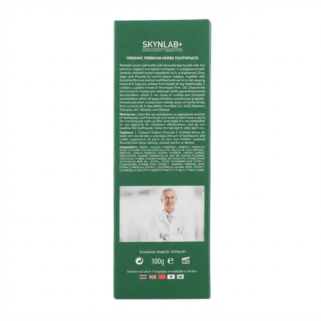 Органическая зубная паста на травах SKYNLAB Premium Herb Organic.