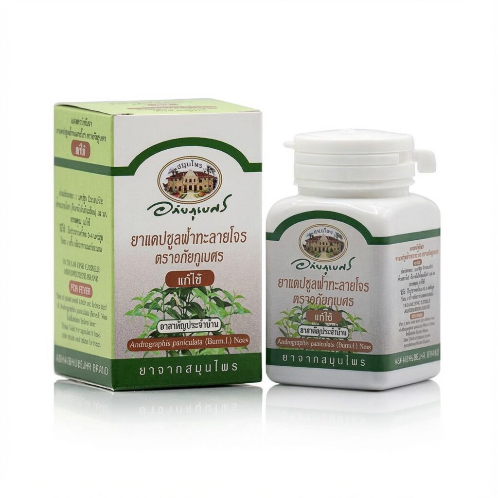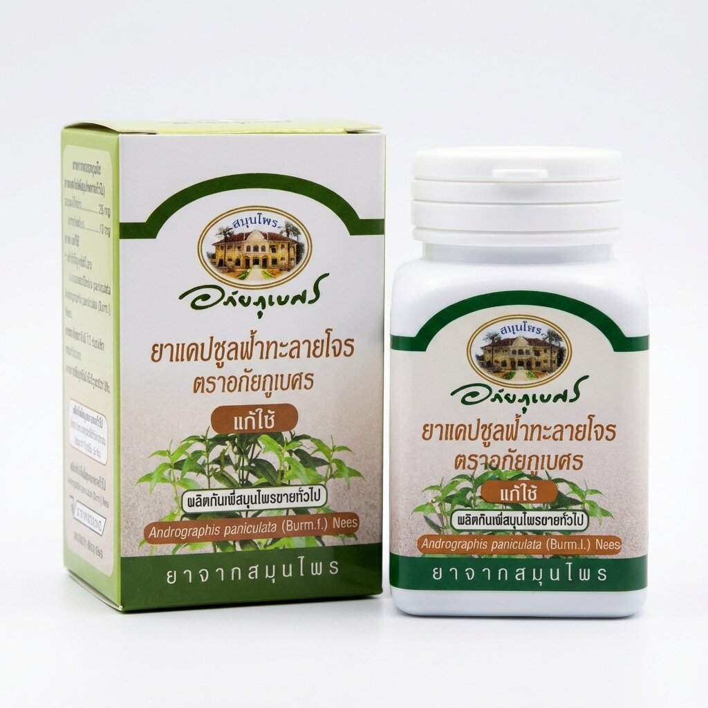 Капсулы Андрографиса метельчатого (Фа Талай Джон) обладают выраженным иммуностимулирующими, антибактериальными противовоспалительными, жаропонижающими свойствами, очищает кровь, применяется для лечения различных заболеваний печени, болезней кожи, кожного зуда, желудочно-кишечных заболеваний, диареи, облегчает симптомы диабета.