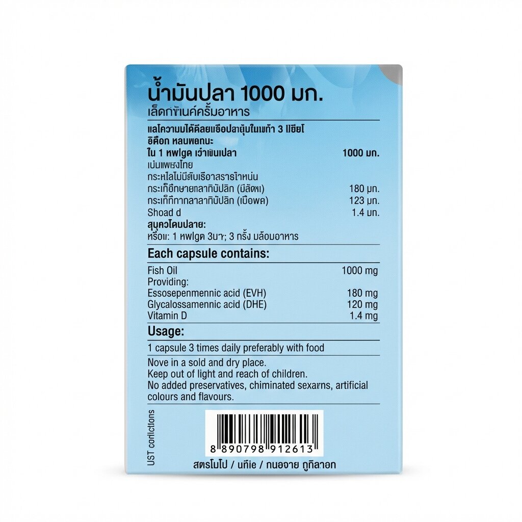 - Высокая концентрация Омега-3: Каждая капсула содержит 1000 мг чистого рыбьего жира, включая 180 мг эйкозапентаеновой (EPA) и 120 мг докозагексаеновой (DHA) кислот для максимального эффекта.