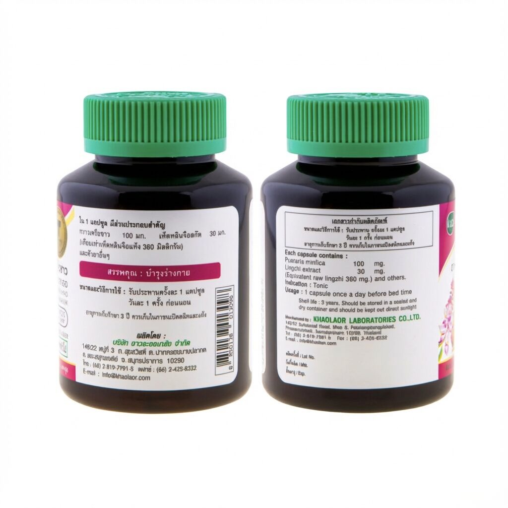 Растительный комплекс от известного тайского производителя Khaolaor объединяет в себе силу двух легендарных компонентов восточной медицины: Пуэрарии Мирифики и гриба Рейши. Препарат разработан для системной поддержки организма, замедления возрастных изменений и повышения жизненного тонуса.