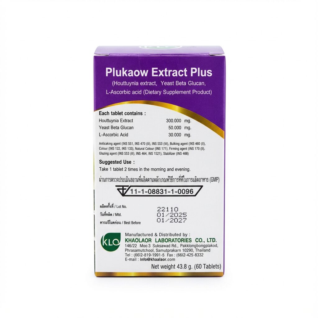Плюкао (Plukaow Extract Plus) от Khaolaor – это тщательно сбалансированный фитокомплекс, разработанный для тех, кто стремится укрепить свой организм изнутри. В его основе лежит экстракт Хаутюйнии Сердцевидной (Houttuynia Cordata) – растения, которое используется в традиционной медицине Востока. Его ценят за выраженное очищаюшее действие на лимфатическую и иммунную системы. Хаутюйния считается одним из ключевых растений для поддержания организма при аутоиммунных состояниях.