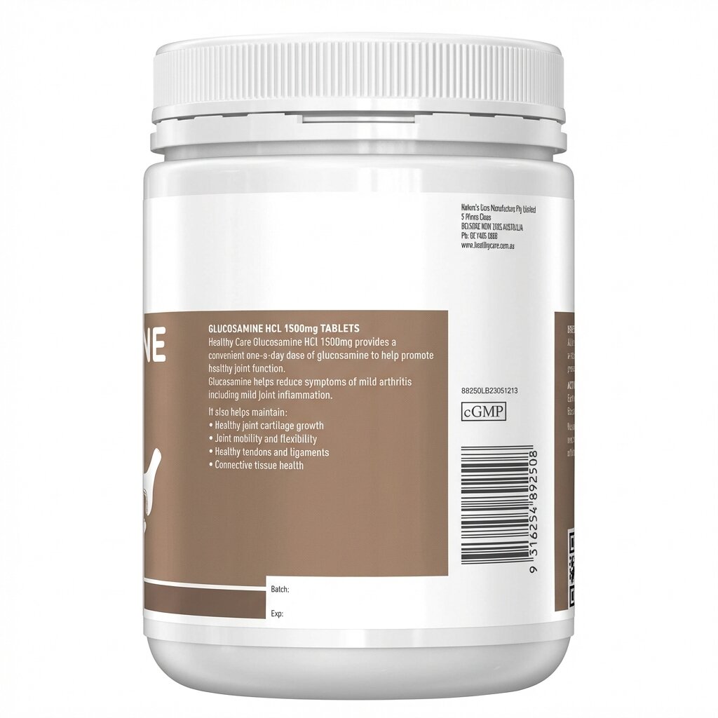 - Особенности формулы: Производитель Healthy Care принципиально использует форму гидрохлорида, избегая глюкозамина-сульфата, часто встречающегося у других брендов, чтобы гарантировать максимальную чистоту и биодоступность продукта.
