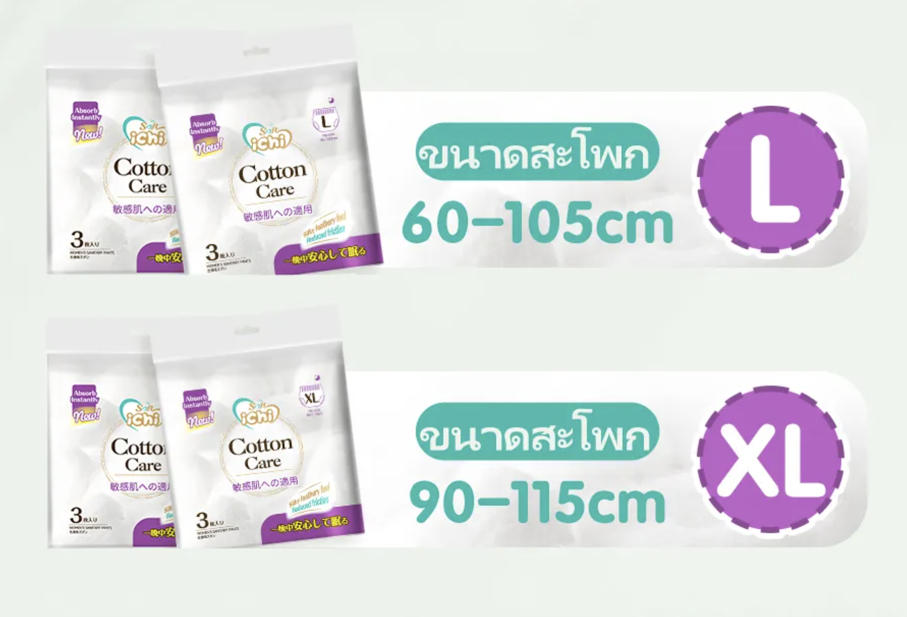 - Размер XL: рассчитан на обхват бедер от 90 до 115 см и вес от 60 до 90 кг. Упаковка содержит 20 штук.