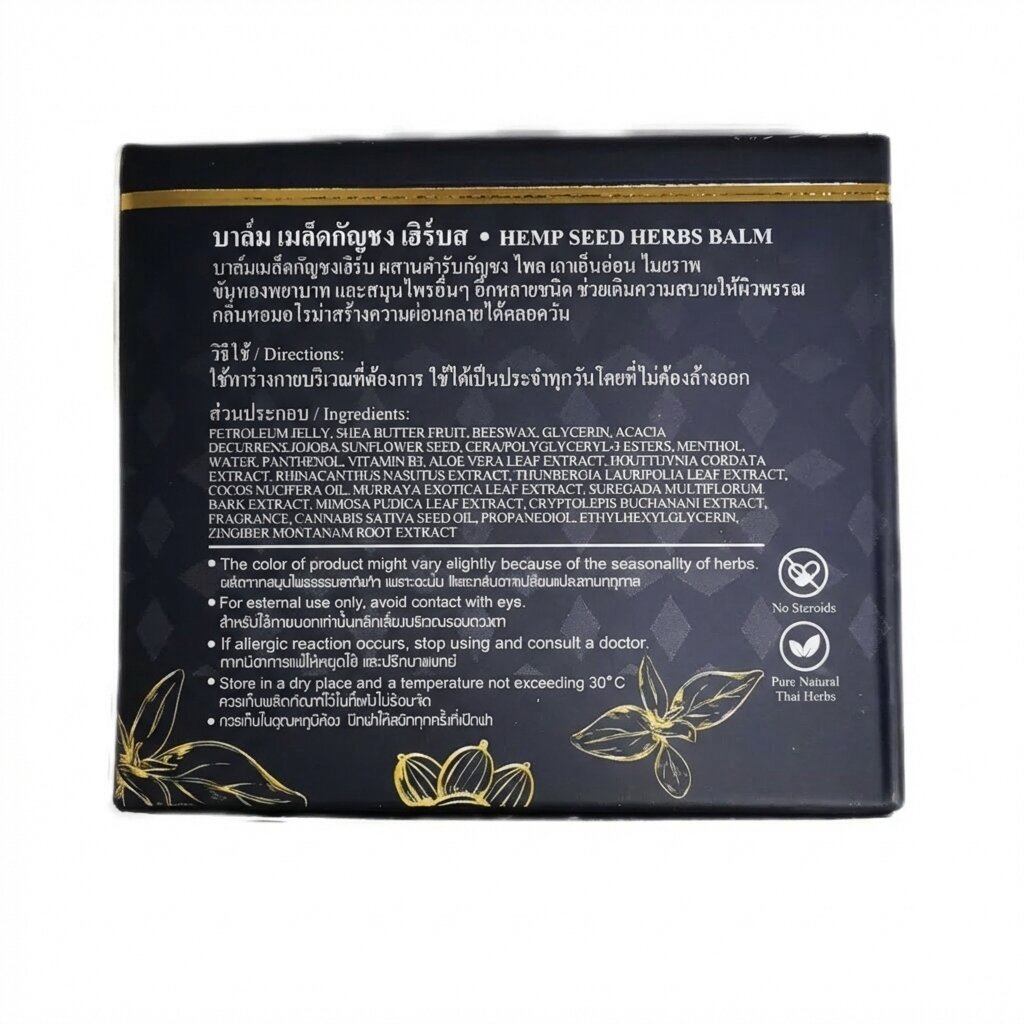 - Многогранное действие: Эффективно устраняет мышечные и головные боли, способствует заживлению кожных поражений и улучшает качество сна благодаря композиции целебных трав Таиланда.