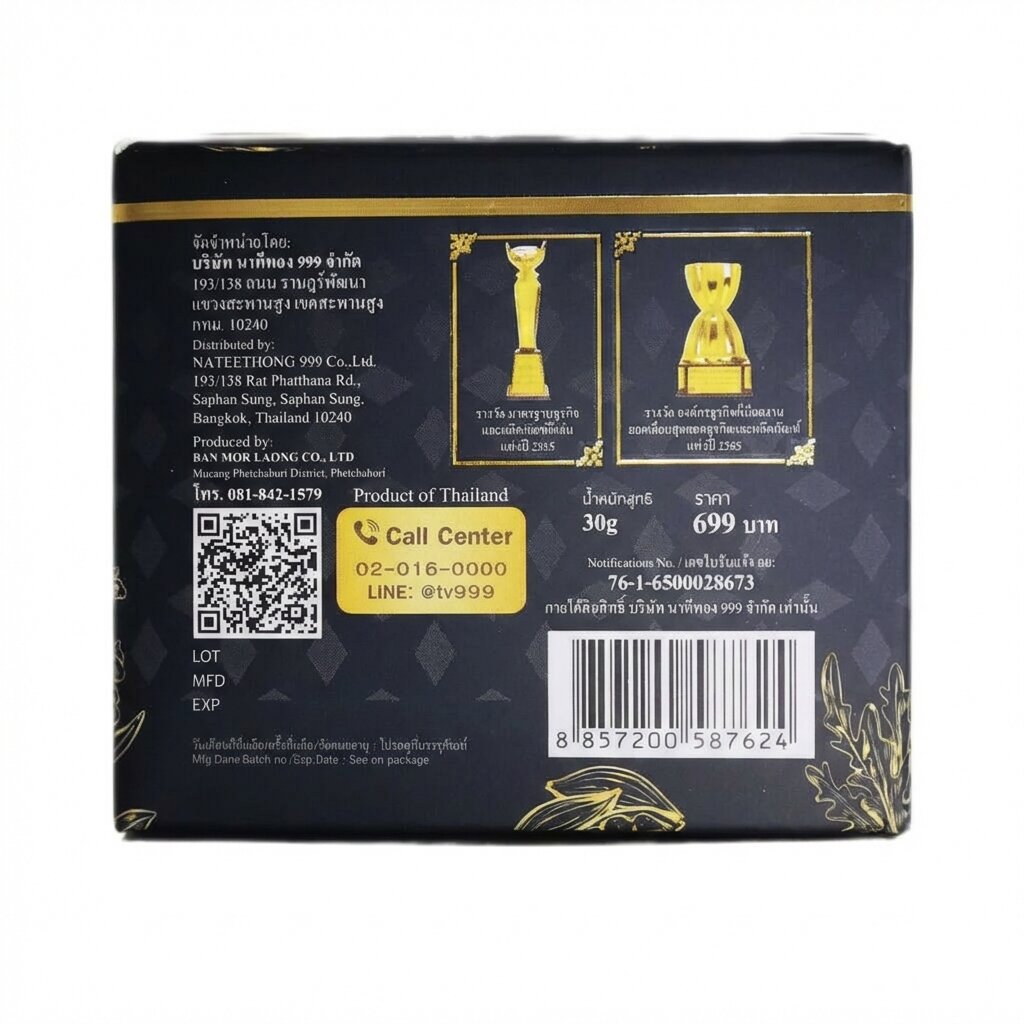 - Целебная забота о коже: Натуральные компоненты, включая экзотические травы Кхантхонг Пхаябат и Плу Као, целенаправленно работают против кожных высыпаний, зуда, воспалений и способствуют быстрой регенерации.