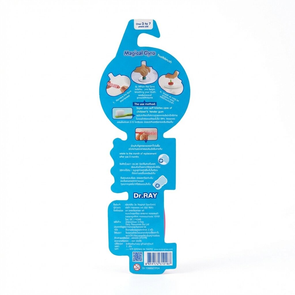 Эта волшебная зубная щетка Dr.RAY Magical Gyro превратит ежедневную рутину чистки зубов вашего ребенка в захватывающее приключение! Разработанная специально для малышей от 3 до 7 лет, она не только эффективно заботится о здоровье полости рта, но и помогает привить любовь к гигиене через игру.